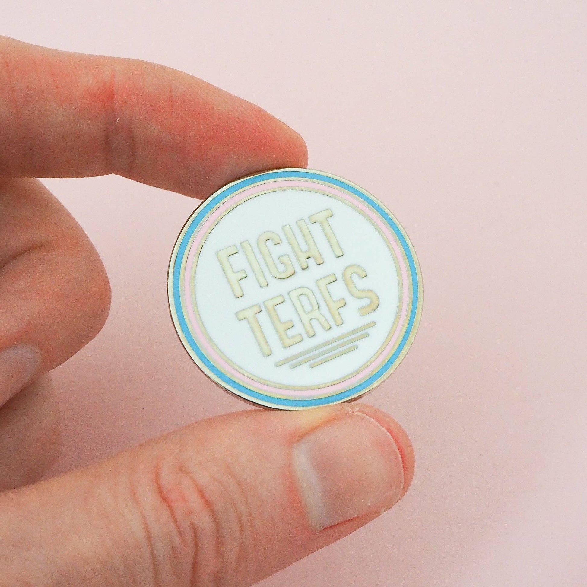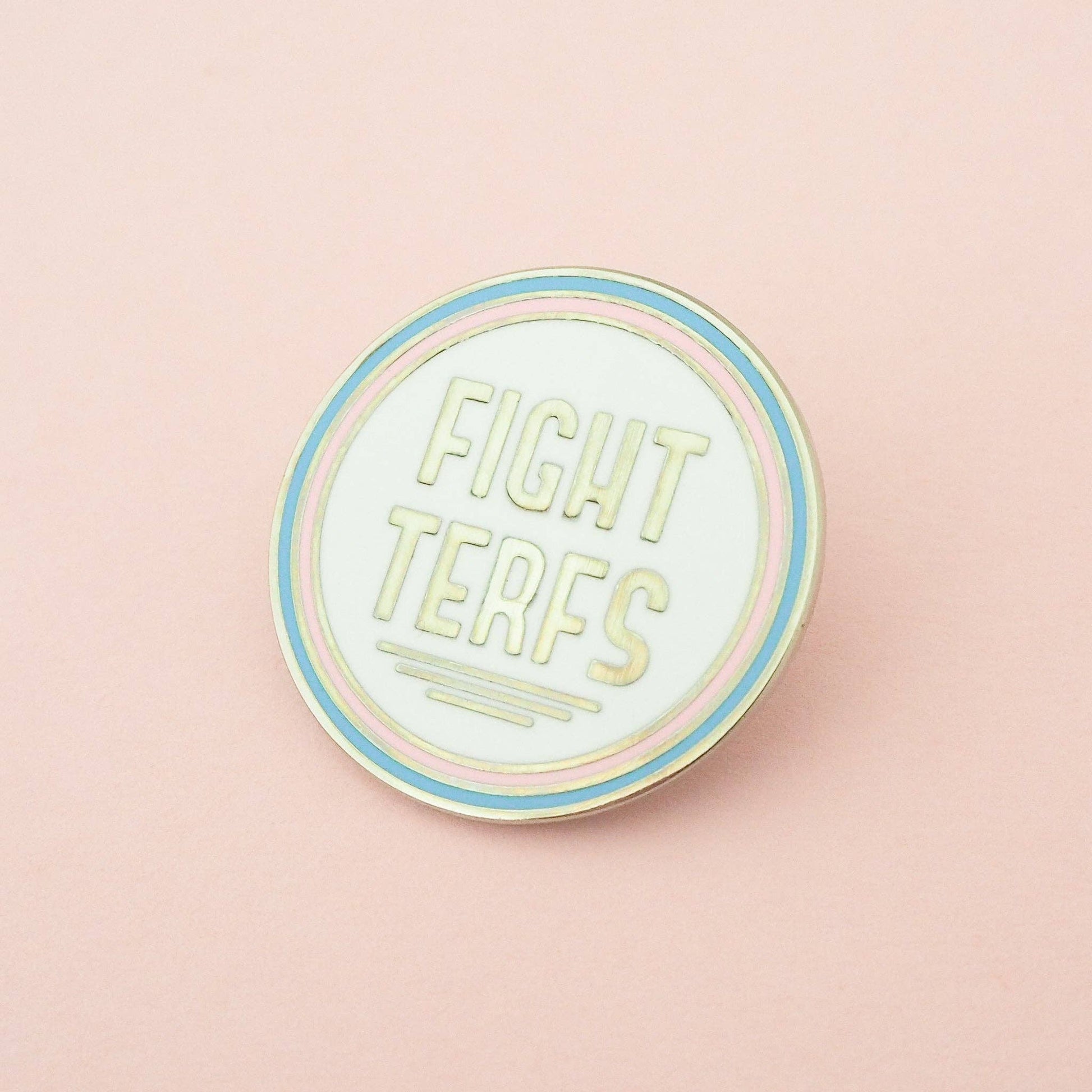 Trans rights are human rights and the actions and opinions of TERFs (Trans-Exclusionary Radical Feminists) are damaging to the trans community. Featuring the colours of the Transgender Pride flag, this pin badge is here to remind the world that if your feminism isn't intersectional, then it just isn't feminism.