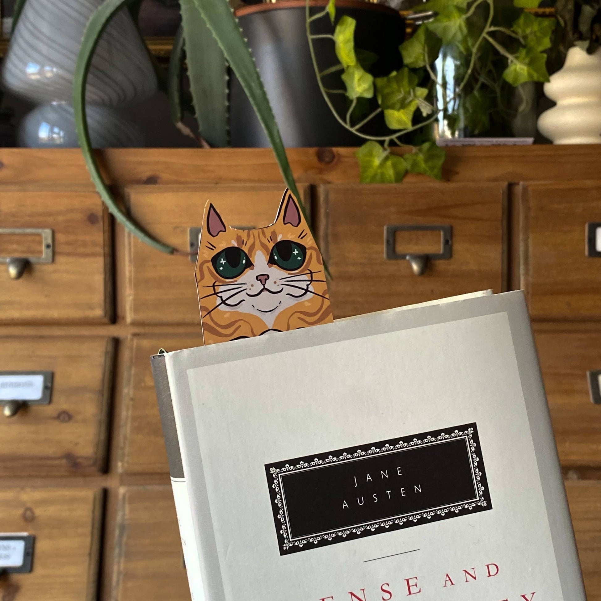Curl up with your favorite tale and let this Ginger Cat Familiar Bookmark keep watch over your pages. Shaped like an enchanting ginger feline - equal parts cozy companion and mystical guardian - this bookmark is purr-fect for cat lovers and daydreamers alike. Infuse your reading ritual with a dash of whimsy, a sprinkle of magic, and the warm, watchful gaze of your charming book-bound familiar.