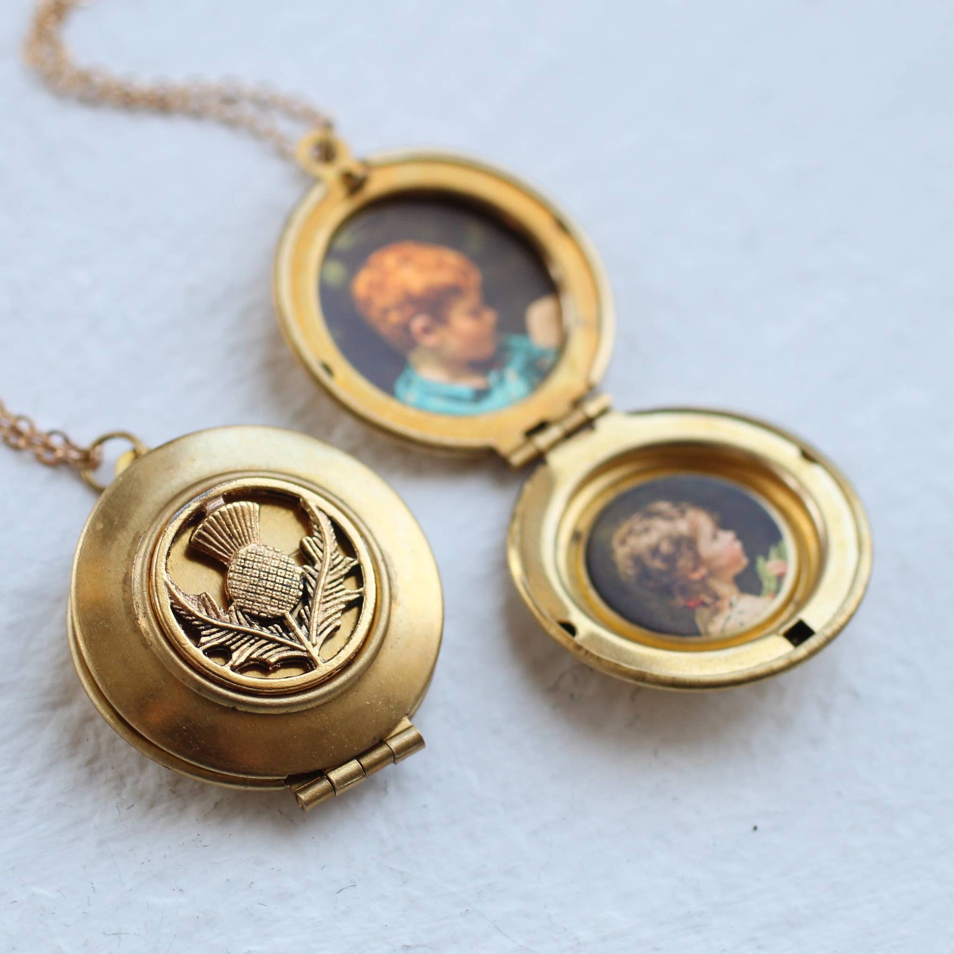 This Scottish thistle locket is made from solid brass, with a beautifully detailed thistle set on the front.