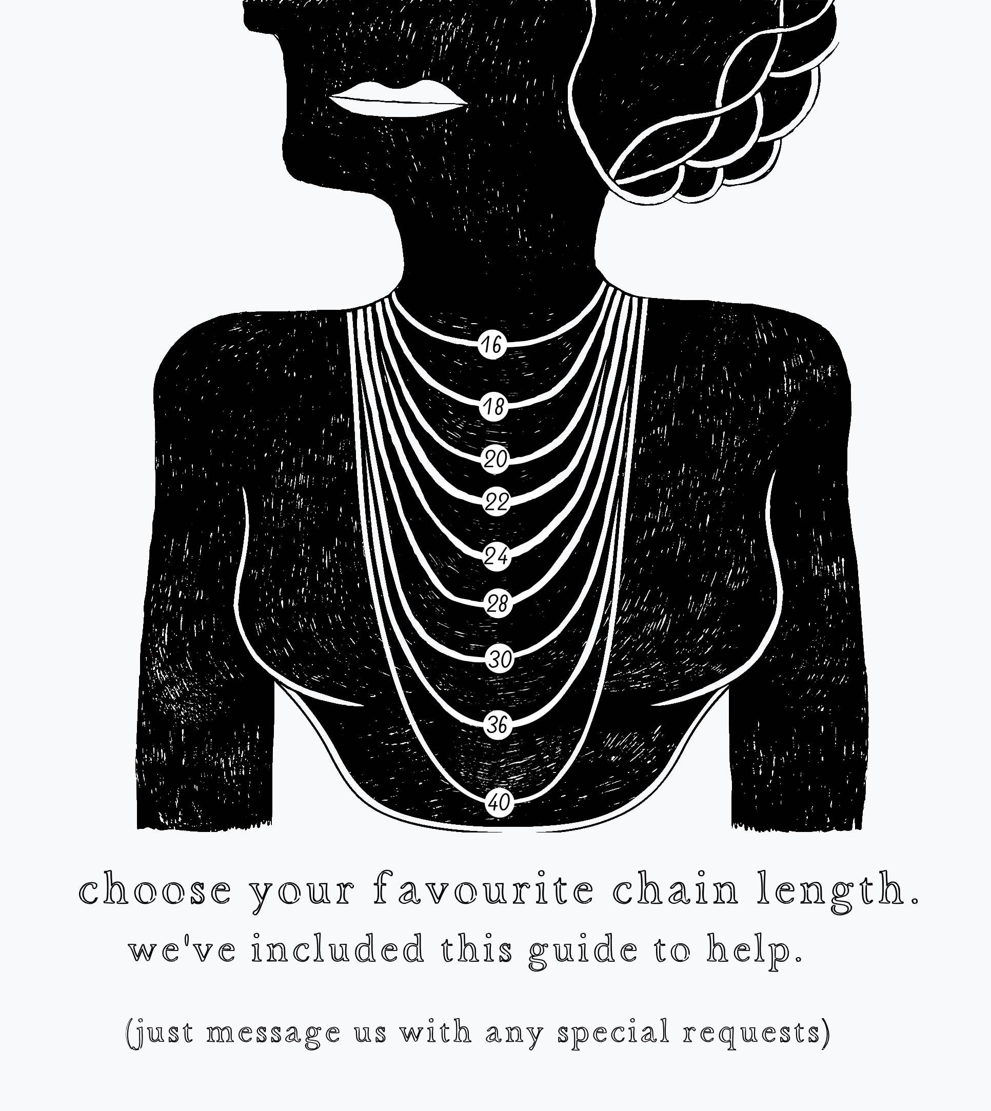 Our lockets are made to order and we offer a range of different chain lengths. Please refer to our illustration for a better idea of how necklace lengths will look when worn.