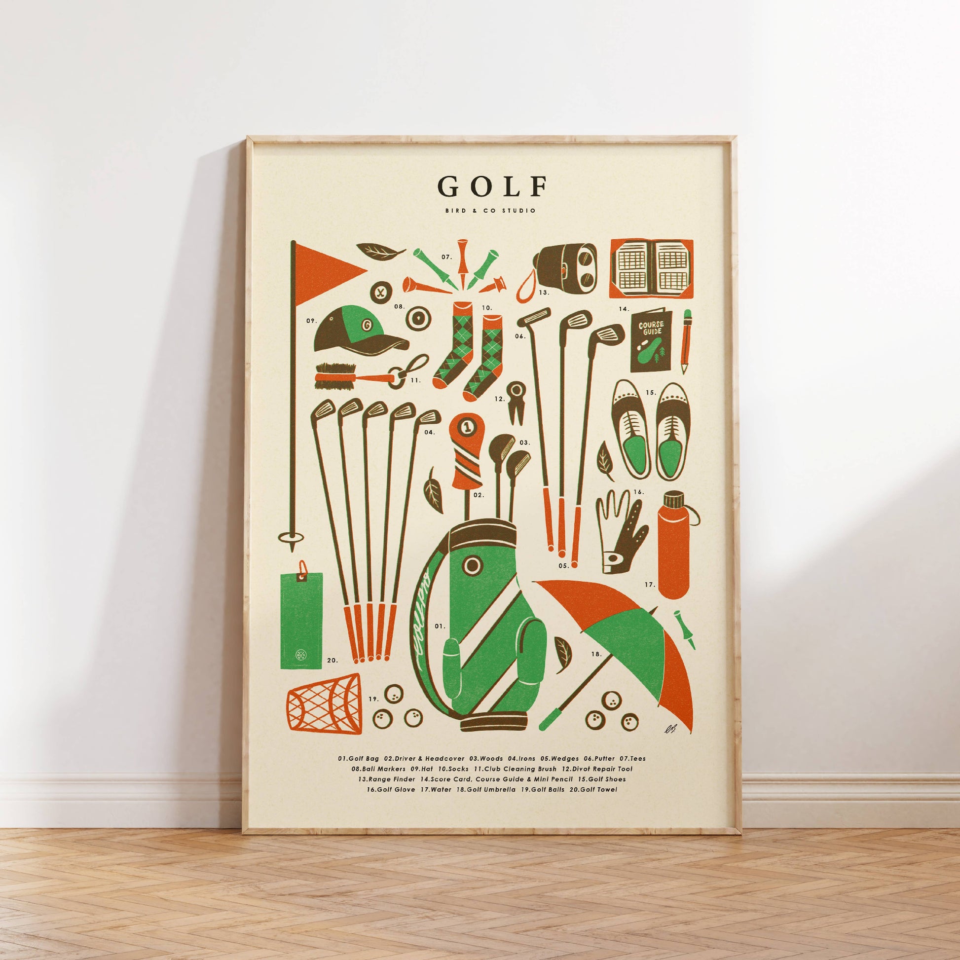 Golf Kit Essentials A4 Print