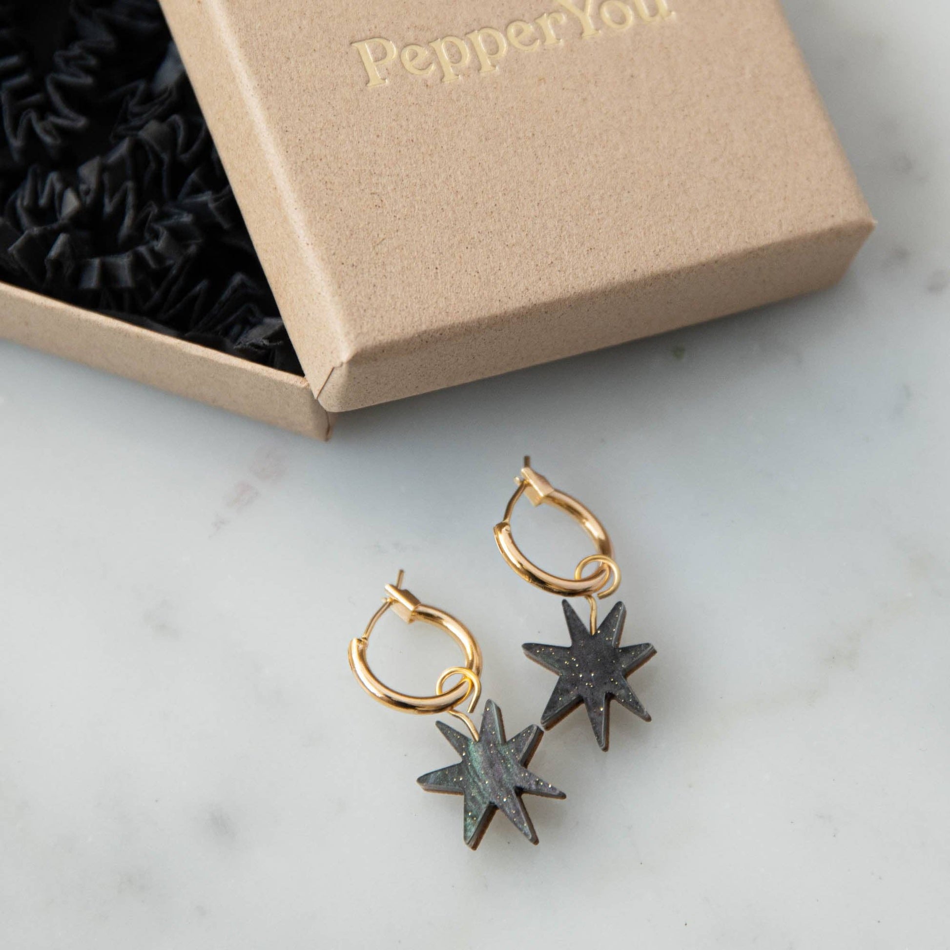 These handmade smokey black marble effect star earrings are the ideal size for everyday wear and make a thoughtful gift for someone special (or a treat for yourself!).