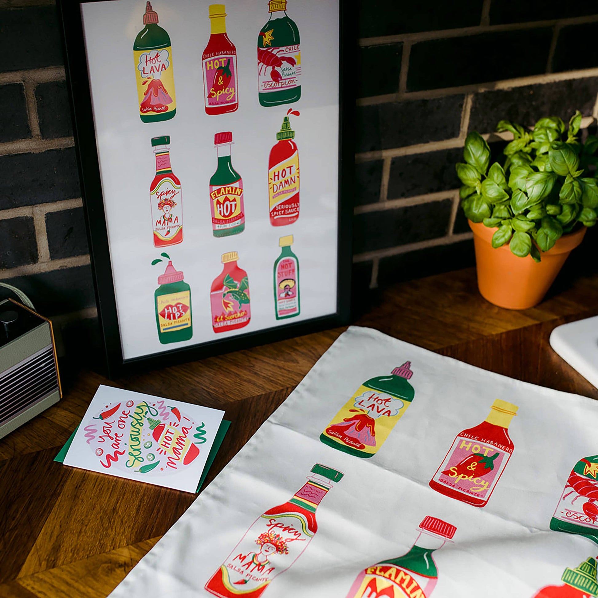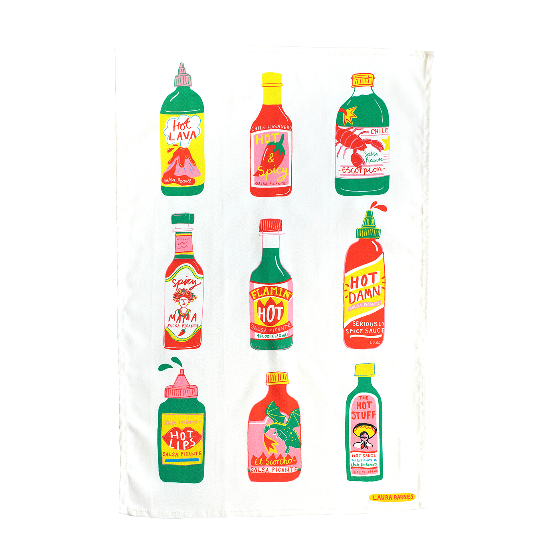 How hot can you go? This tea towel is perfect for the heat loving foodie or hot sauce addict in your life!
