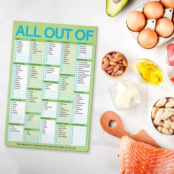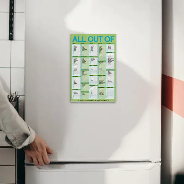Who hasn't wandered blindly at the grocery store, trying to remember what to buy? Now available in a yummy pastel-y lime green, this perennial favorite lets you check off depleted items as you run out, then replenish with ease and certainty when next you shop. A magnetic notepad to solve all your all out of list needs—yay! Great gift for any head of household and/or chief meal planner 6 x 9 inches, 60 sheets; magnet on back