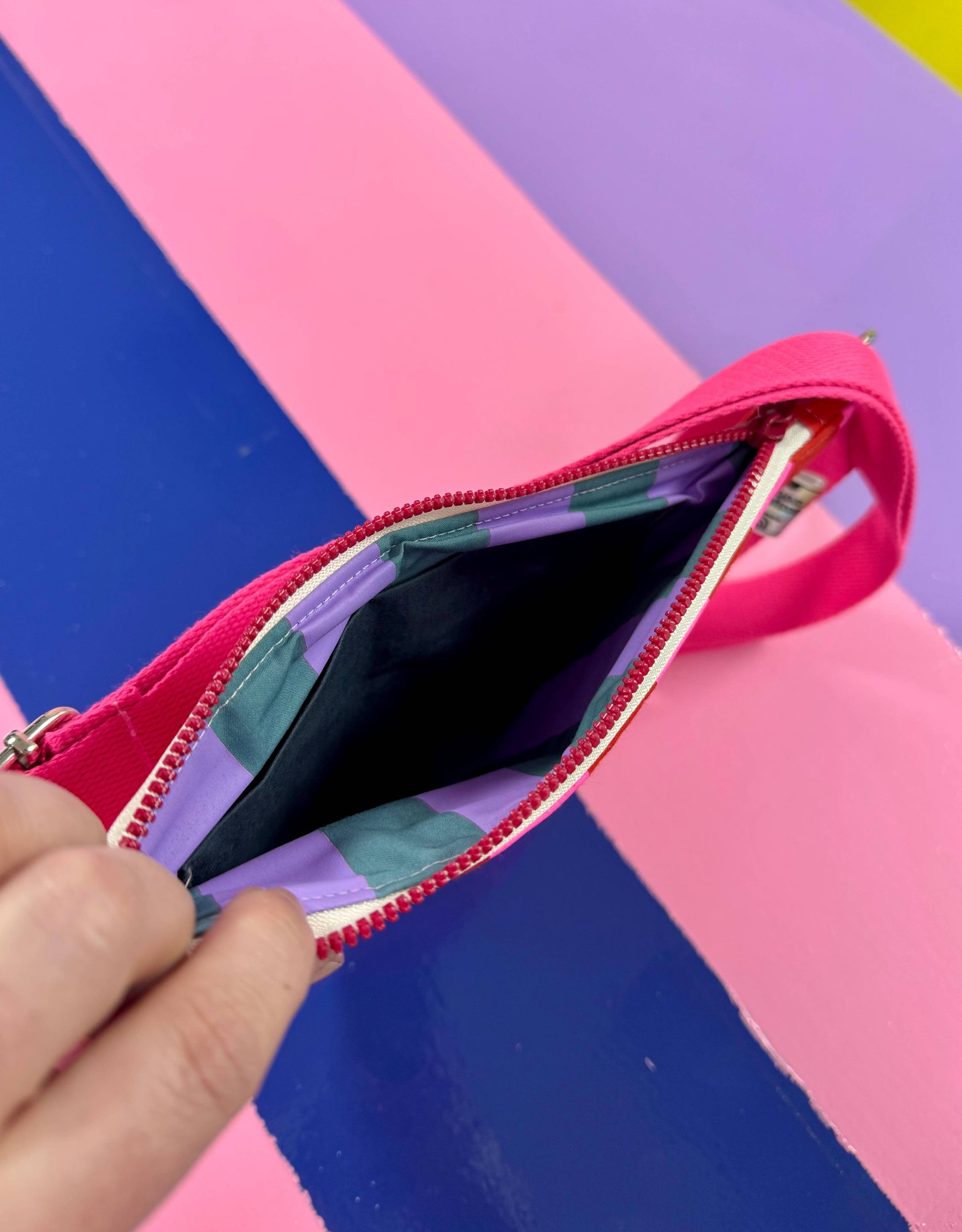 The bag is fully lined and padded for extra structure and comfort, with a small interior pocket for your phone and cards. Please note: while the exterior design is consistent, the lining fabric may vary in colour and print, adding a surprise element to each piece.