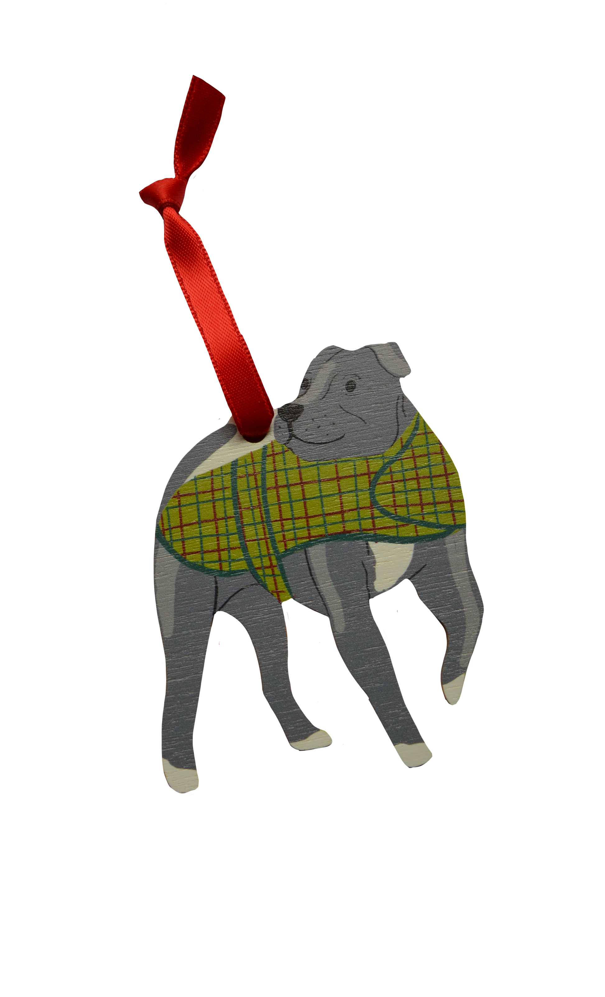 A festive twist on the lovable Staffy, this illustrated decoration captures the stocky charm of the breed, perfect for Staffy owners and fans. Made in the UK from sustainably sourced wood, this charming piece features an original illustration, UV printed and cut to shape for a high-quality finish.