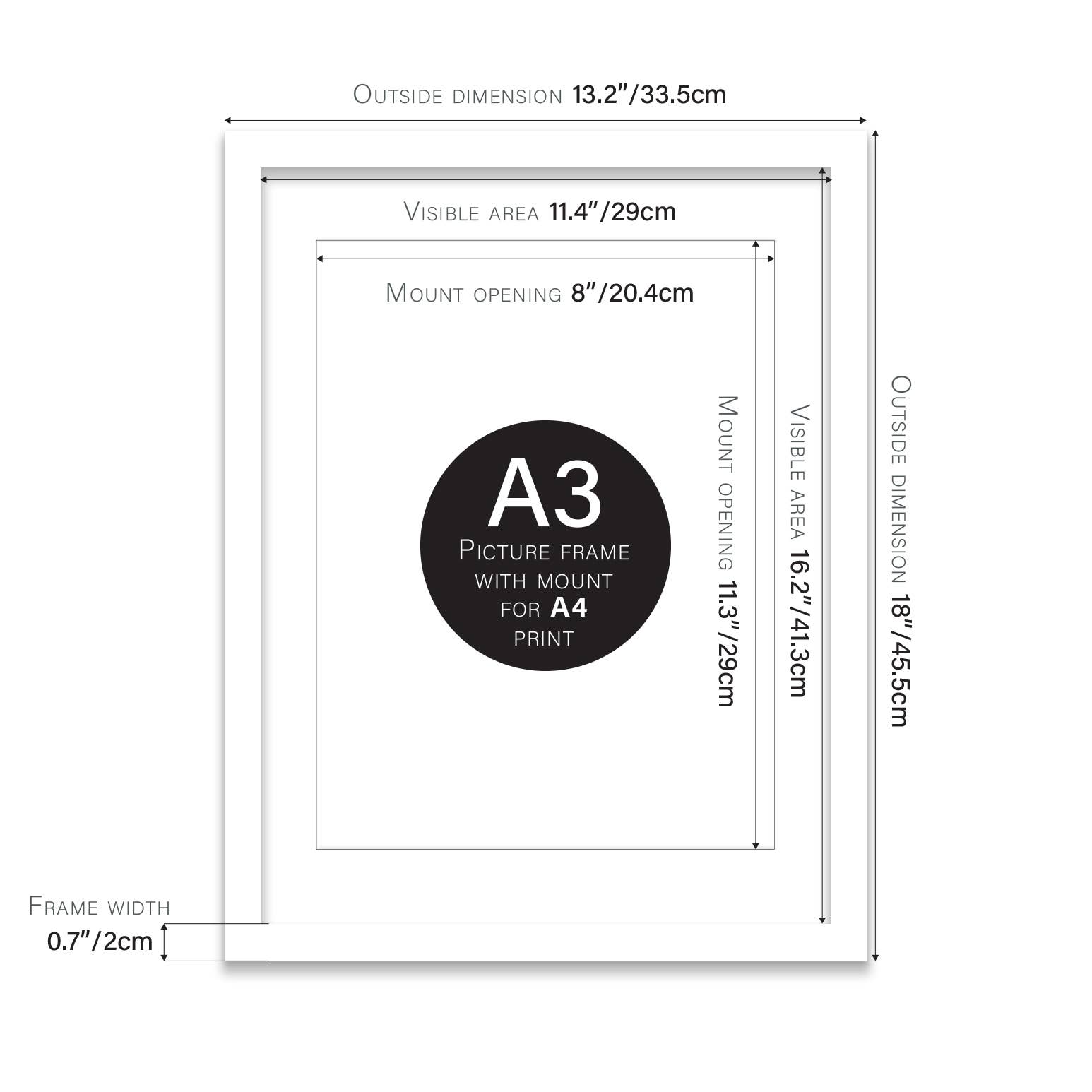Simple and lightweight A3 frame with a card mount to showcase a A4 print. Get your prints framed and on the wall with minimal fuss.